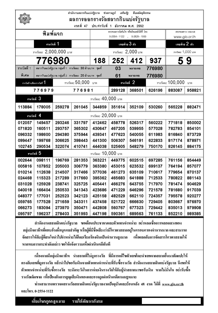 Official Paper Release by Thailand Government Lottery Office (GLO)